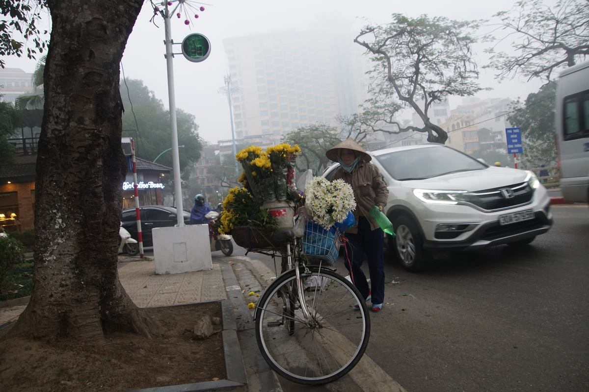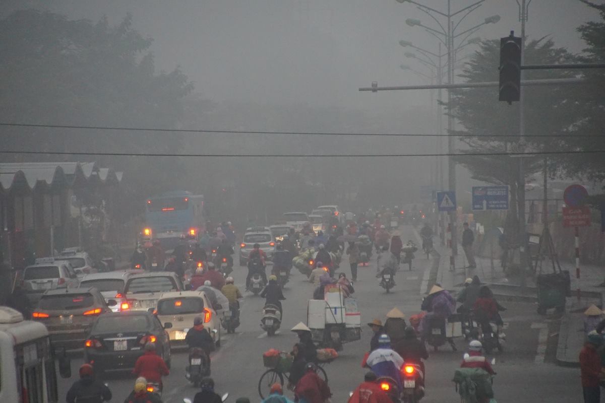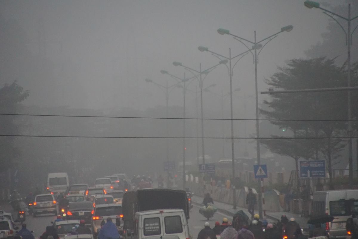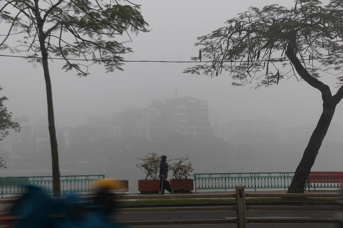 Theo ghi nhận của phóng viên, sáng nay Hà Nội chìm trong sương mù dày đặc khiến tầm nhìn xa giảm xuống gây trở ngại cho người tham gia giao thông.