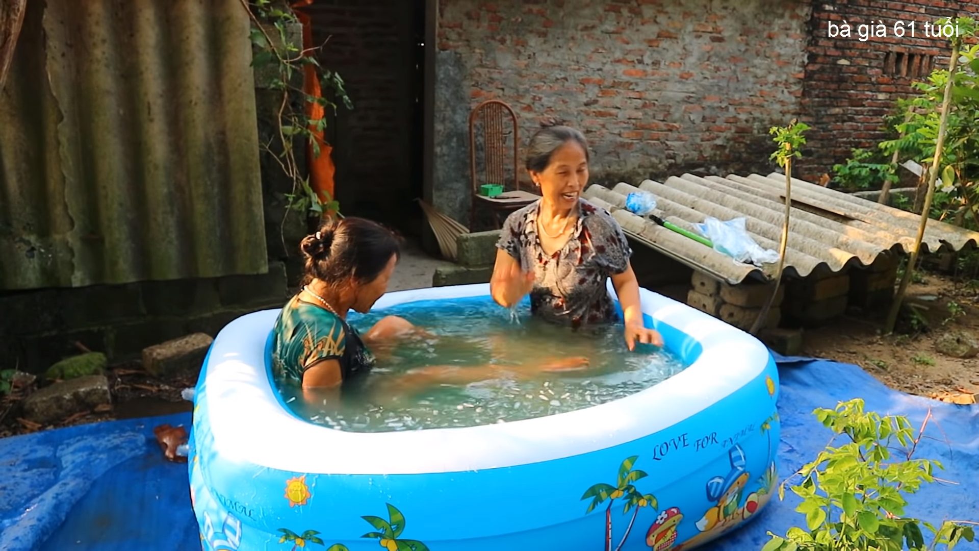 Theo đó, hai cụ già bơm nước và cho đá lạnh vào bồn nước sau đó ngâm mình và đùa giỡn. Hai cụ bà cũng tỏ ra vô cùng thích thú khi thực hiện thử thách này và còn “khuyên” mọi người: “Mọi người ơi! Mọi người cứ thử mà xem, phải nói là tuyệt vời! Mát quá!”.