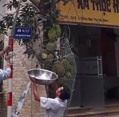 Bên cạnh đó, nhiều độc giả cũng nhanh chóng phát hiện sự đặc biệt của cây mít này. Nếu quan sát kỹ bạn sẽ thấy được khu vực dưới chân cây, các trái mít cũng được chủ nhà bao bọc rất cẩn thận với lưới chống trộm.