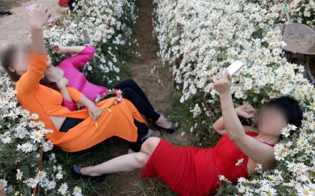 Đây không phải là lần đầu tiên dân mạng chứng kiến những hình ảnh không đẹp như này. Trước đó, hình ảnh 3 người phụ nữ mặc váy nằm đè lên hoa để chụp ảnh cũng từng khiến dân mạng rất bất bình.
