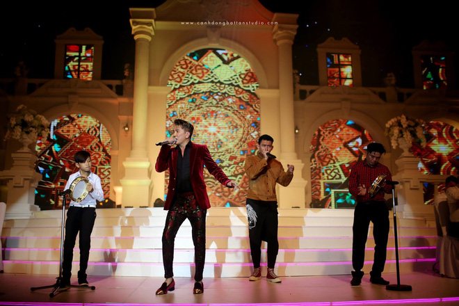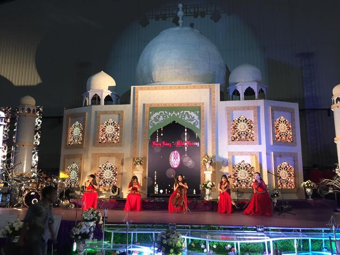 Không gian tiệc cưới được trang hoàng như một đêm đại nhạc hội