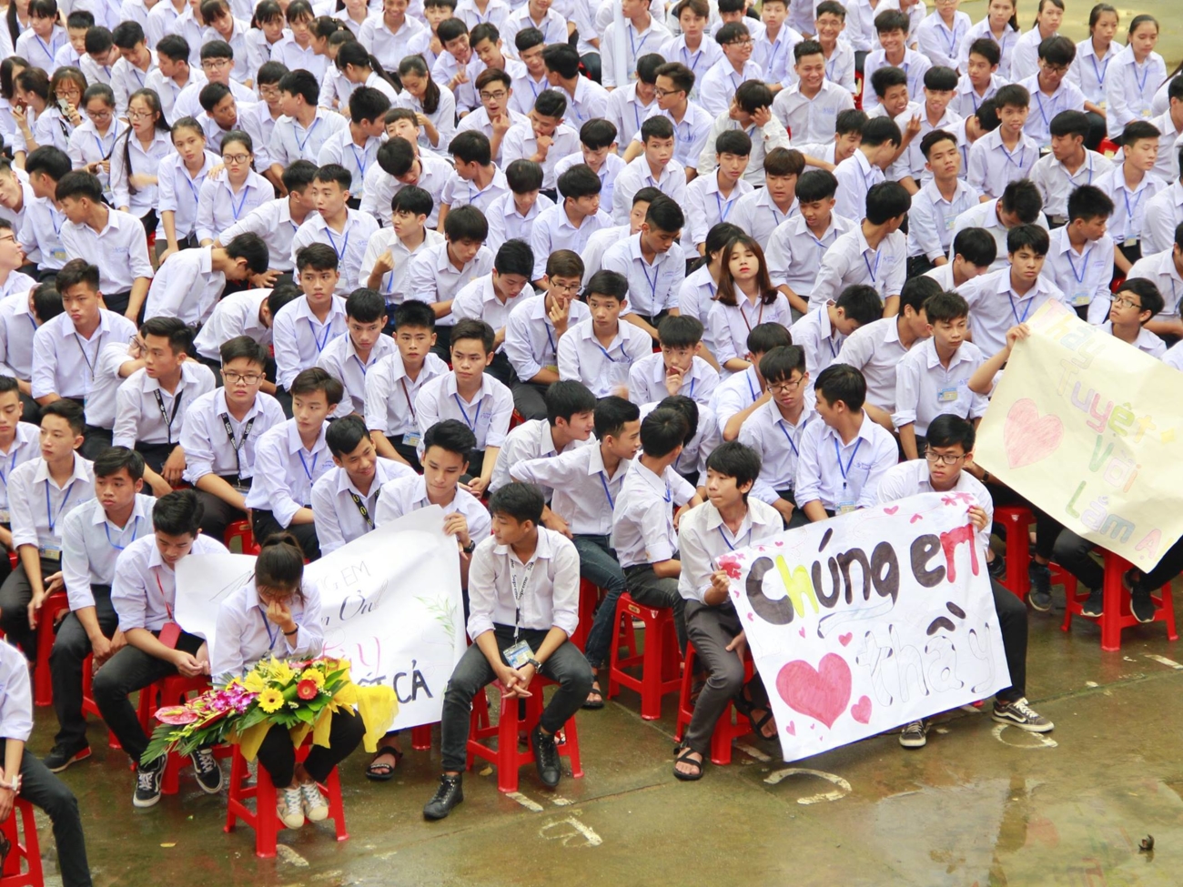 Rất nhiều tình cảm của học sinh được thể hiện qua các biểu ngữ.