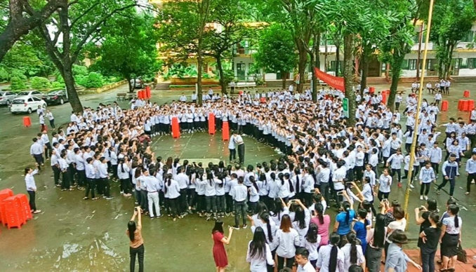 Học sinh xếp thành hình trái tim để tạm biệt thầy.