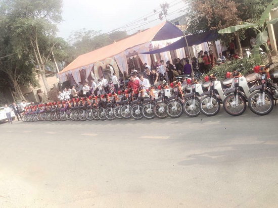Khi đón dâu về nhà những chiếc xe Dream được xếp thành hàng ngay ngắn không gây ảnh hưởng cho người tham gia giao thông.