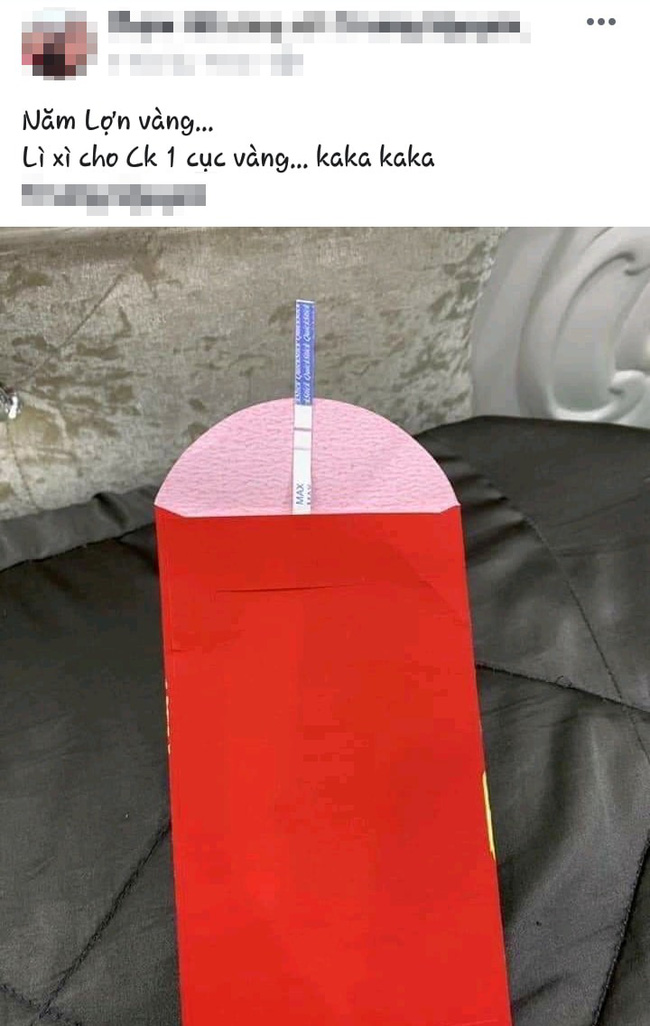 Mới đây, trên một nhóm kín, tài khoản Facebook tên C.C.U bất ngờ đăng tải một đoạn bức hình chụp phong bao lì xì đựng một chiếc que thử thai 2 vạch căng đét kèm theo dòng caption: “Đầu năm tôi chỉ muốn khoe người yêu mới của tôi. Tối 30 Tết quen nhau mùng 6 Tết được cô ấy lì xì” - chàng trai này viết.