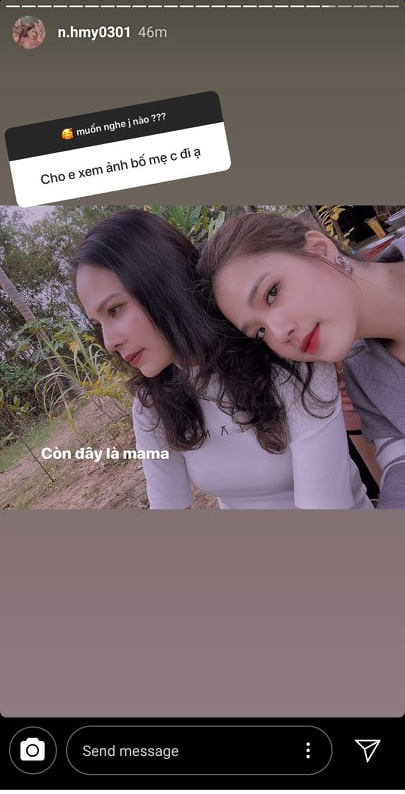 Cụ thể, khi được hỏi “Bố mẹ chị làm nghề gì vậy ạ”, Huyền My cho biết: “Bố chị làm tòa án, mẹ chị kinh doanh bình thường thôi”. Tiếp đó, một số người cũng bày tỏ mong muốn xem mặt bố, mẹ Huyền My, cô nàng cũng đã chiều lòng những người yêu quý mình.