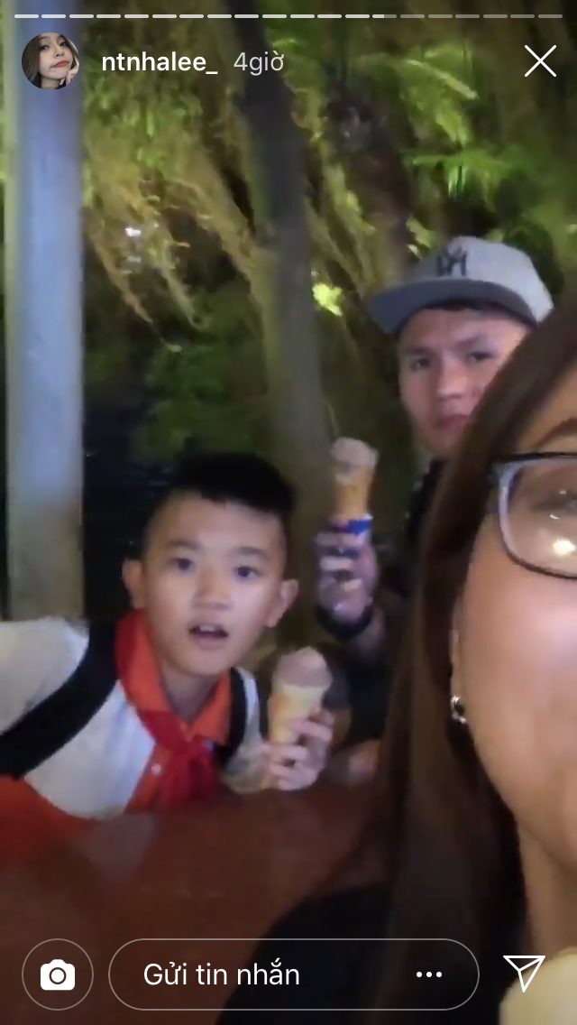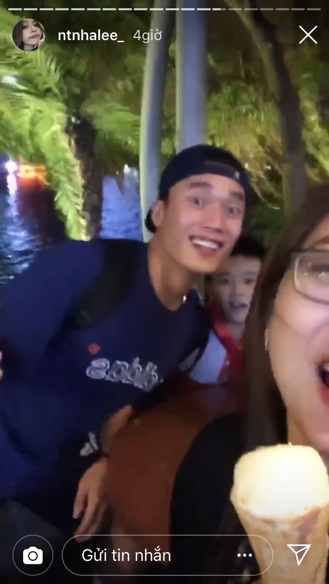 Lần này cô nàng hẹn hò ăn uống đi chơi cùng nhiều người bạn. Trong lúc tham gia trò chơi hỏi - đáp với fan, cô nàng đã để lộ khuôn mặt Quang Hải ngồi kế bên, có lúc còn dùng tay vuốt tóc bạn gái. Lâu rồi các fan mới được chứng kiến cử chỉ thân thiết của hai người.