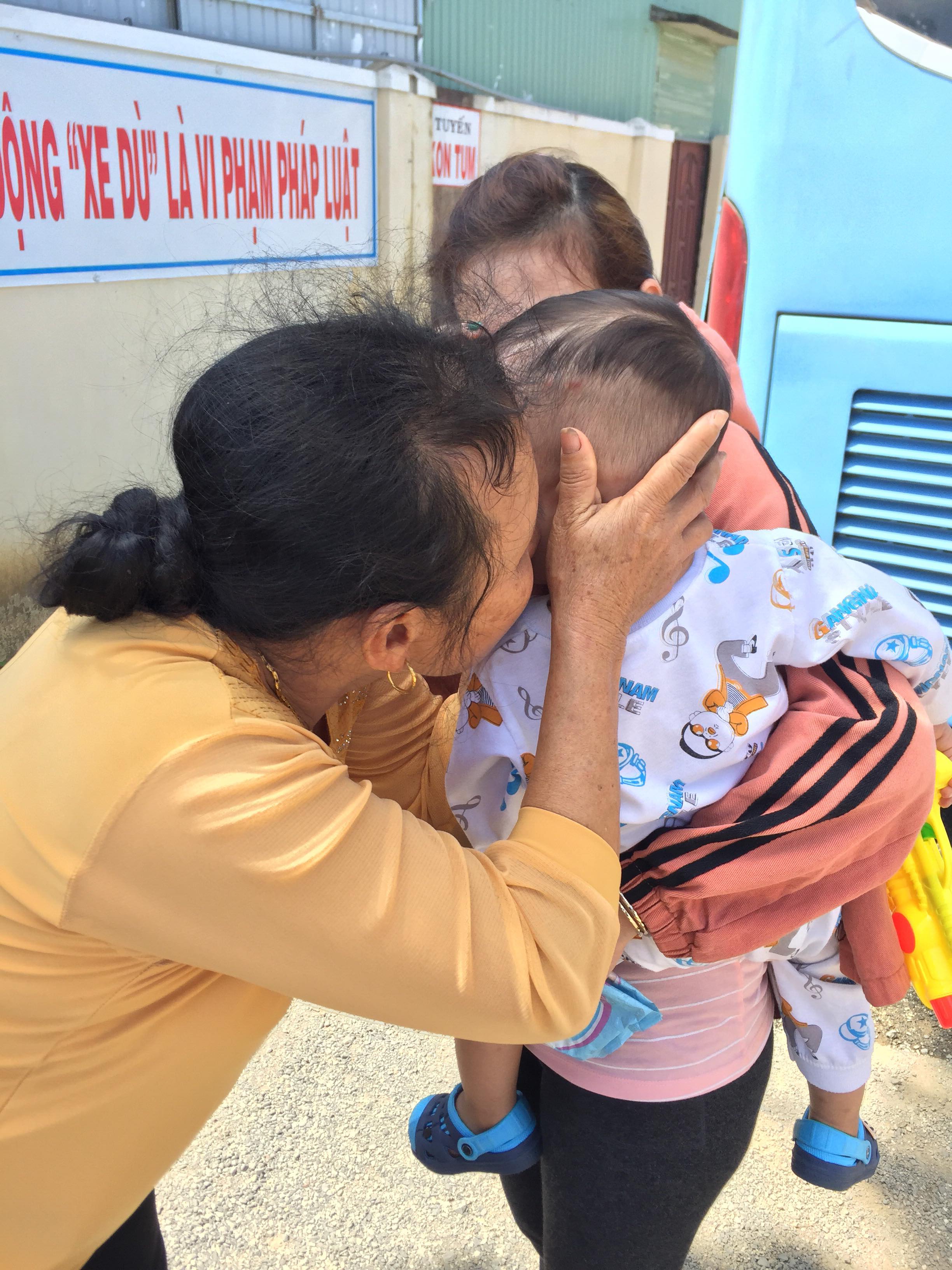 Bà ngoại ôm hôn cháu trước khi chia tay. Ảnh: NVCC.