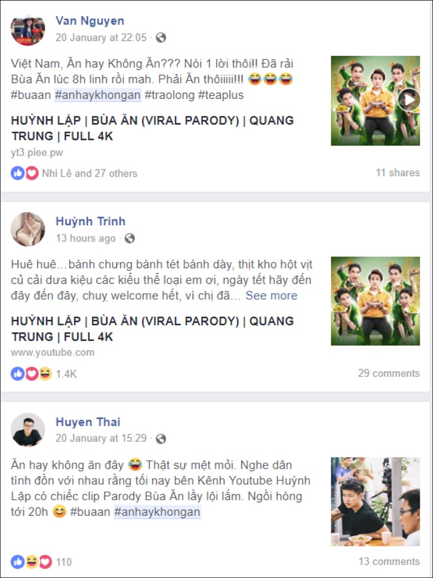 Đồng cảm sâu sắc với tiếng lòng ai oán “ăn hay không ăn”, cư dân mạng share như vũ bão clip tết mới nhất của Huỳnh Lập - Quang Trung và xem nó như tuyên ngôn ăn tết của mình. Thích thú, hào hứng lại còn có thể “troll” lẫn nhau, câu nói này chính xác là câu nói “ám ảnh” nhất mạng xã hội đầu năm nay rồi.