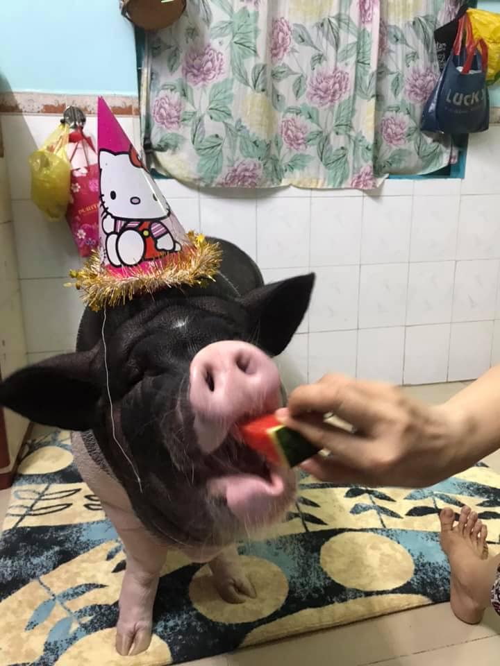 Nhưng dẫu sao gia đình vẫn rất yêu quý và xem chú heo này như 1 thành viên trong nhà và có cả buổi tổ chức sinh nhật. Ảnh: Thùy Dương.