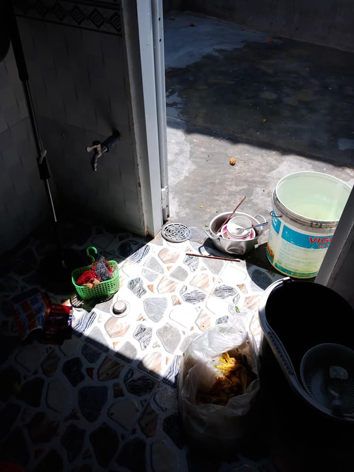 Đồ ăn văng tung tóe ở khu vực nhà bếp.