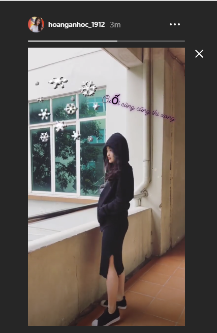 Trong khi đó, bạn gái “nấm lùn” của Đoàn Văn Hậu lại vô cùng thoải mái sau khi trải qua một kỳ thi học kỳ mệt mỏi. Hoàng Anh Ngọc đăng tấm hình diện một outfit full đen vô cùng ấm áp giữa thời tiết lạnh lẽo của Hà Nội nhưng cũng không quên phá cách thêm phần quyến rũ với váy xẻ.