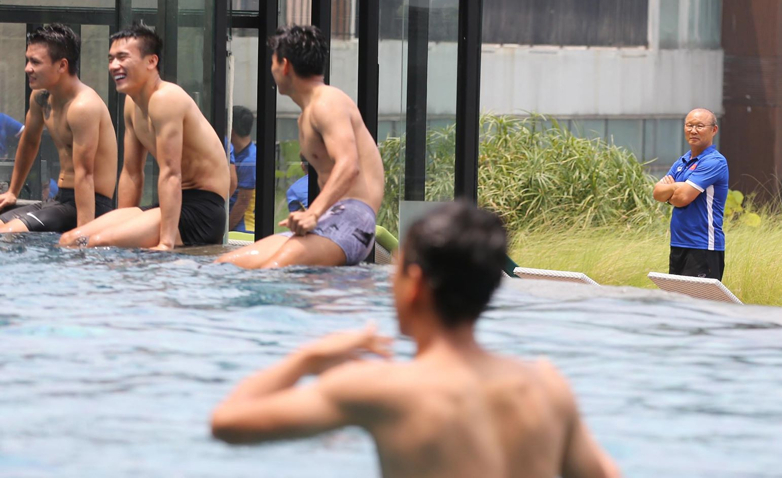 Tôi nhớ là có dặn HLV thể lực đừng để các cầu thủ ngâm nước lâu quá, nếu không có thể bị giãn cơ. Tôi nhớ có chỉ thị như vậy. Sau đó, tôi đứng ở xa để xem họ như thế nào”, thầy Park cho biết.