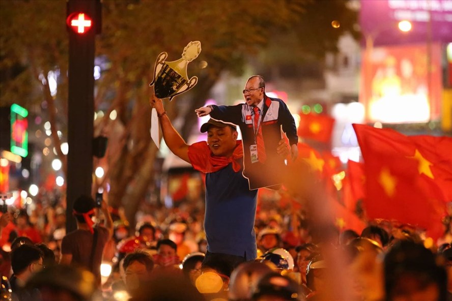 Người hâm mộ hình nộm này cầm trên tay, hô vang “Việt Nam vô địch”. Ảnh: Trường Sơn.