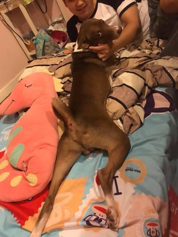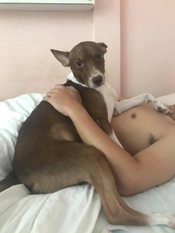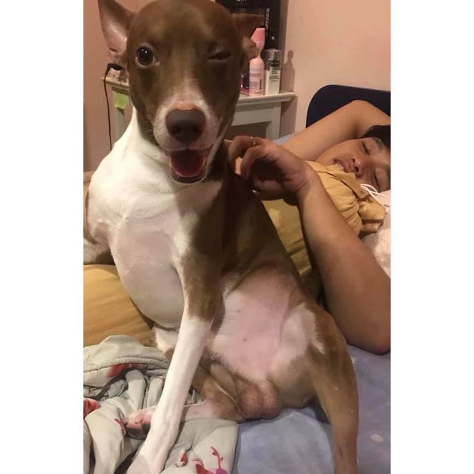 Chú chó dưới đây sẽ cho bạn câu trả lời. Vâng, con giáp thứ 13 ở đây là nó đấy ạ. Hãy nhìn cách nó lả lơi với chồng mình trên giường kìa. Mặt nó còn kiểu thách thức ”Bố cuớp chồng của mày đấy, thì sao nào?”. Mình tức lắm, nhưng mình vẫn phải cơm nước cho nó, dắt nó đi vệ sinh, tắm rửa lau khô cho nó…