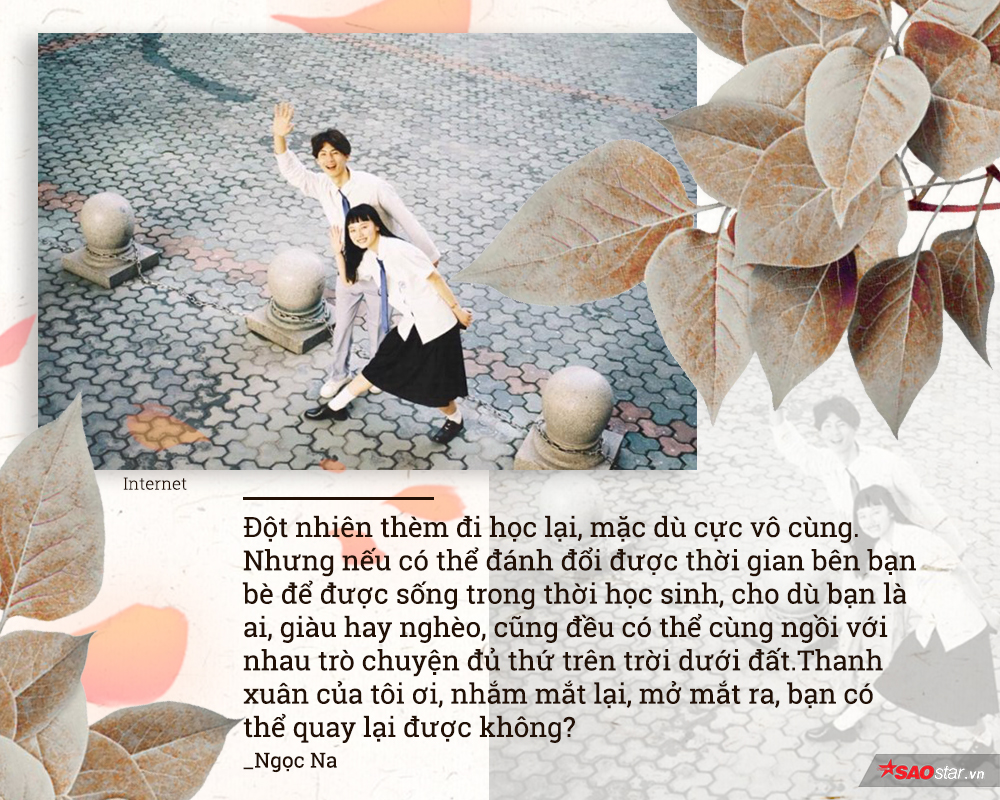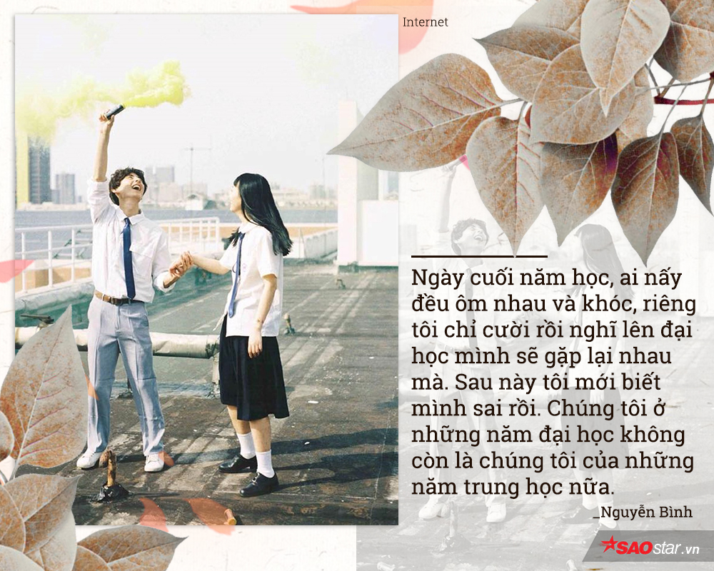 Cảm giác đó ban đầu chắc vui lắm. Vì không cần phải vùi mình vào mớ bài tập khổng lồ nữa. Vào Đại Học, là tự do hơn, thoải mái hơn, trưởng thành hơn… Nhưng rồi dần dần chúng ta đều nhận ra, cái quãng thời gian cấp 3 ấy, sao mà đẹp, mà ngọt ngào đến thế. Nó khiến chúng ta quên sạch những áp lực, khổ cực, mà chỉ nhớ về những niềm vui - niềm vui mang tên Thanh xuân, mà bất kỳ ai cũng chỉ trải qua một lần trong đời.