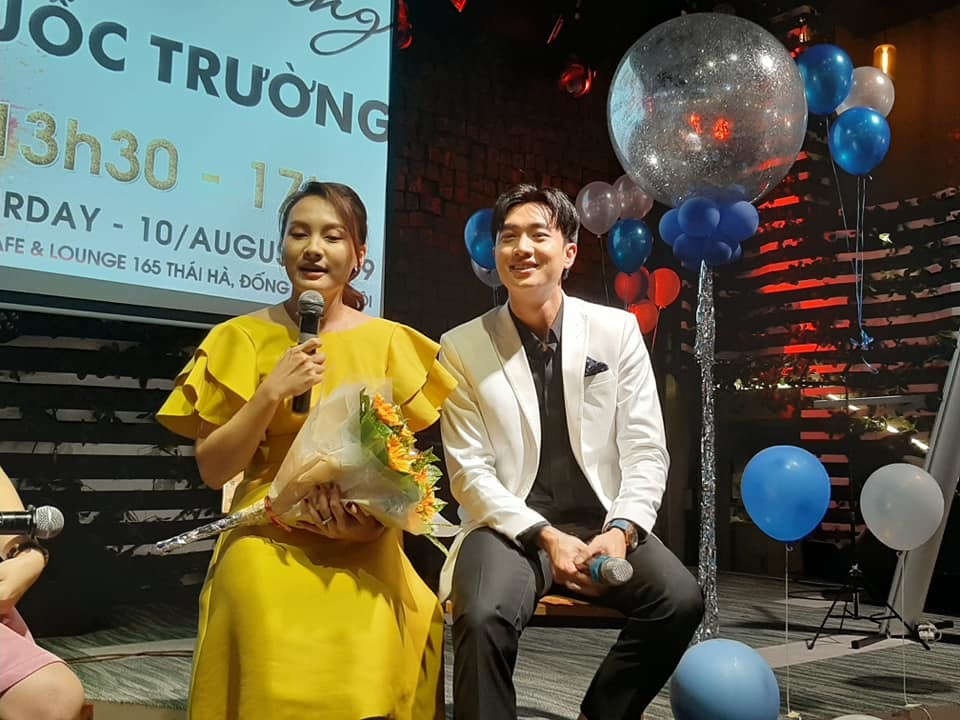 Khán giả có mặt rất sớm tại buổi offline, Quốc Trường xuất hiện chỉnh chu với bộ quần âu, sơ mi đen, vest trắng, vẻ đẹp trai của chàng diễn viên đã đốn tim không ít fan nữ. Buổi gặp mặt diễn ra ấm áp và vui vẻ.