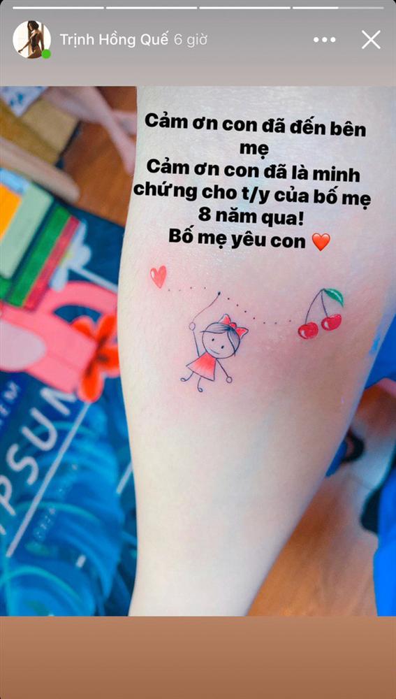 Mới đây, Hồng Quế đã khoe hình xăm mới trên cánh tay hết sức dễ thương với ý nghĩa thể hiện tình yêu với cô con gái tên Cherry của mình. Cựu người mẫu cũng từng chia sẻ, con gái là người tình, là bạn thân, là tri kỉ kiếp này của cô. Tuy nhiên, trong dòng trạng thái đăng kèm với bức ảnh, chân dài sinh năm 1994 lại nhắc tới bố đẻ của Cherry và tình cảm kéo dài suốt 8 năm cả hai, dù không lâu trước đây, bà mẹ một con đã chính thức công khai tìm hiểu với nam diễn viên Huỳnh Anh. Điều này khiến cho cộng đồng mạng không khỏi nổi lên nhiều mối nghi ngờ.