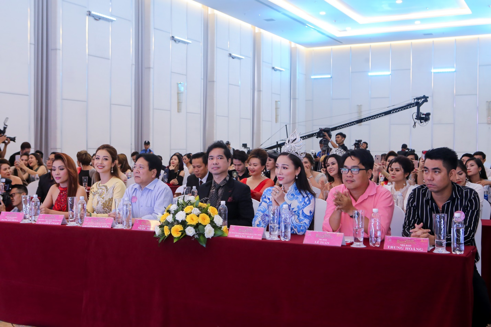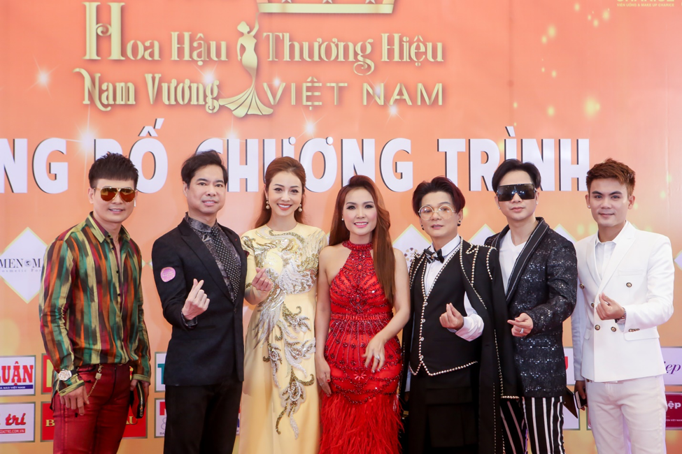 Thạc sĩ Đặng Gia Bena cùng các khách mời Ban giám khảo tại buổi họp báo Tôn vinh Hoa hậu - Nam vương Thương hiệu 2018.