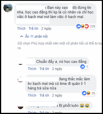 Một comment cho rằng Lê Đức chỉ học Cao Đẳng, không phải Cử nhân Đại Học. Và hiện đang học việc ở Bạch Mai