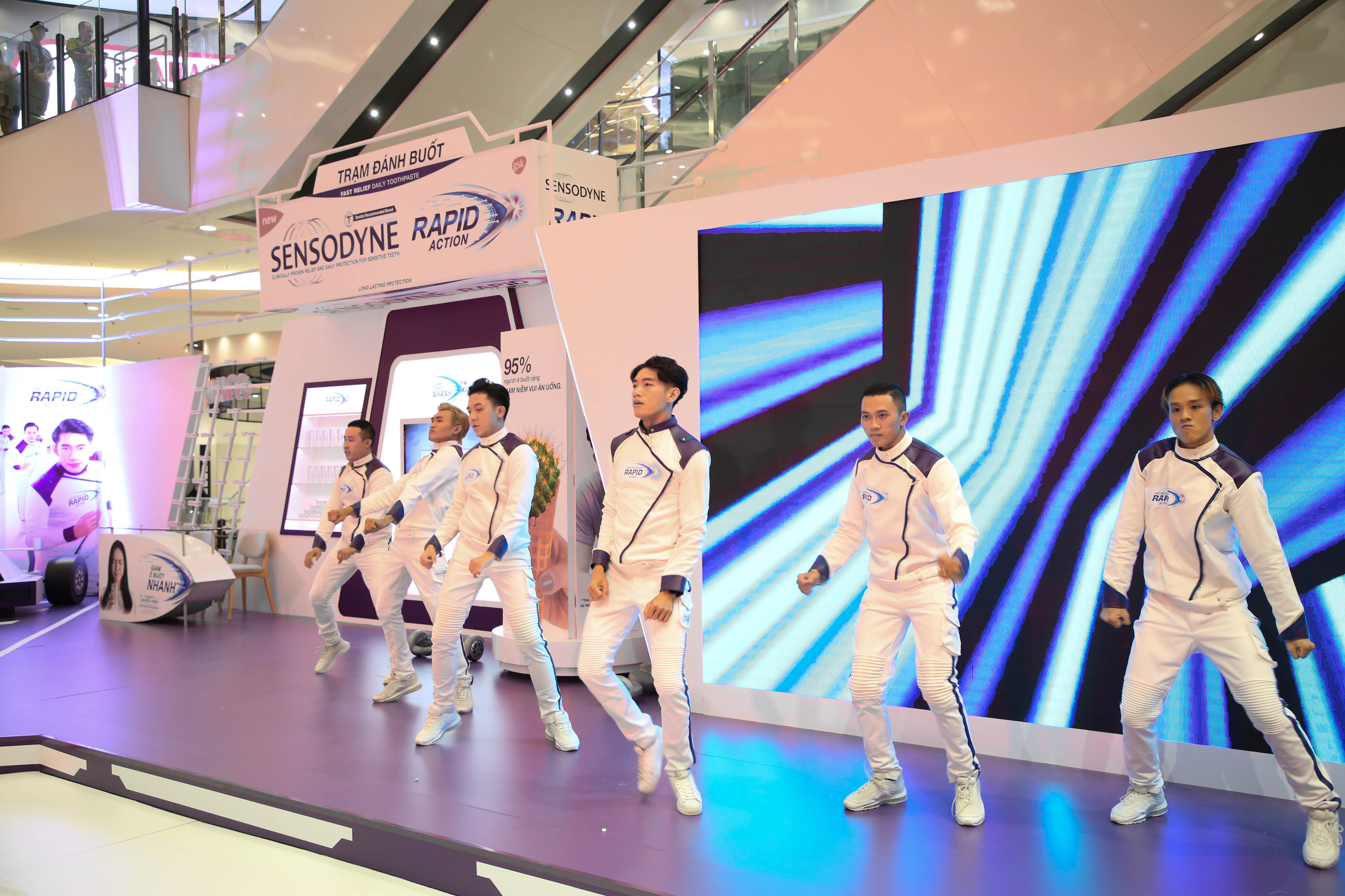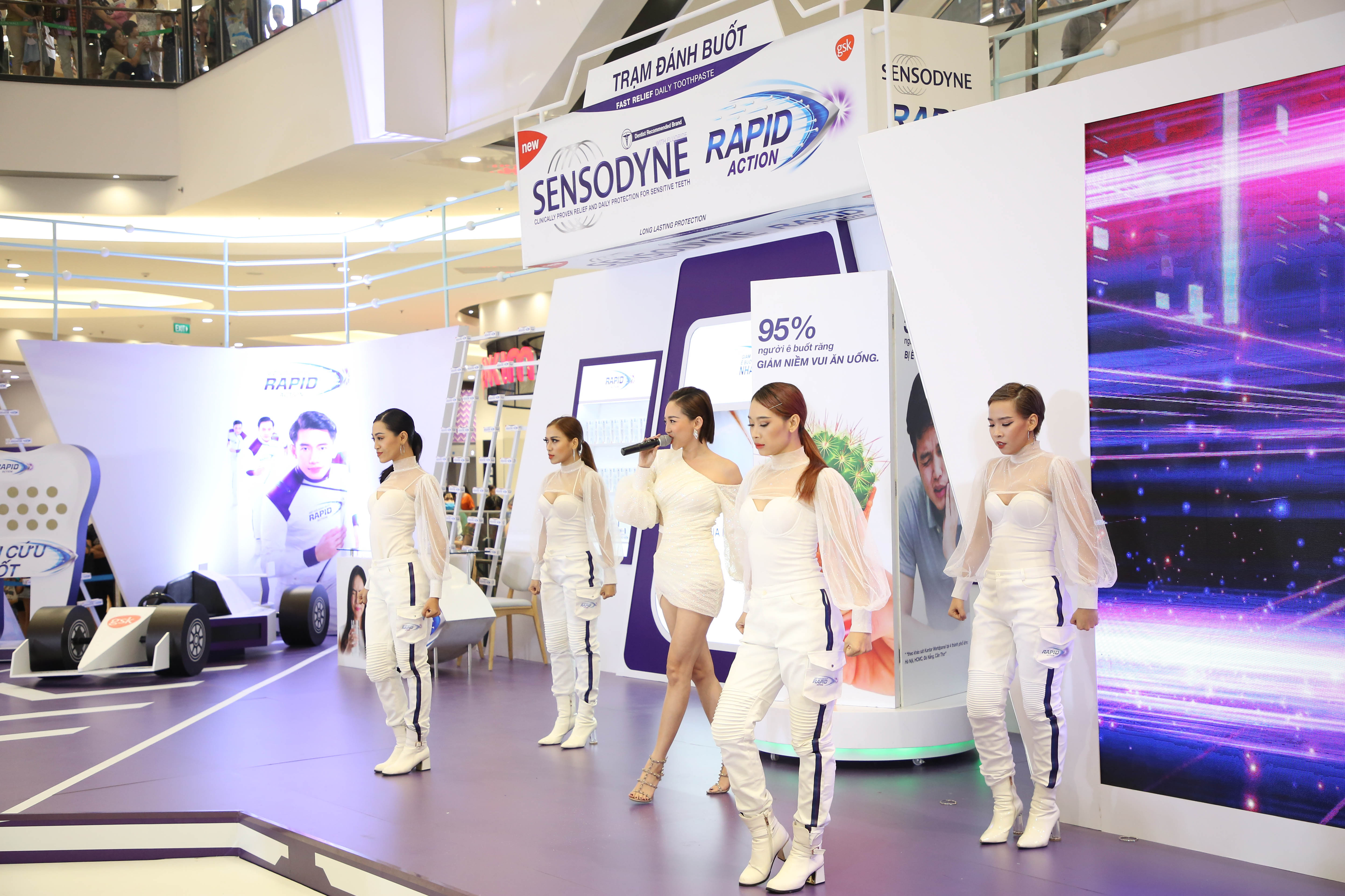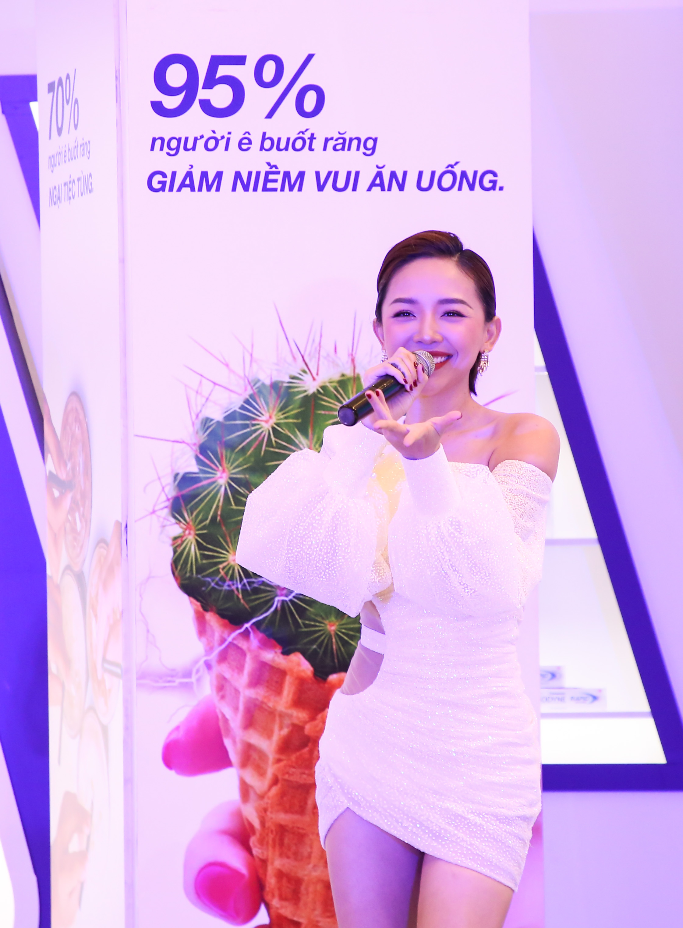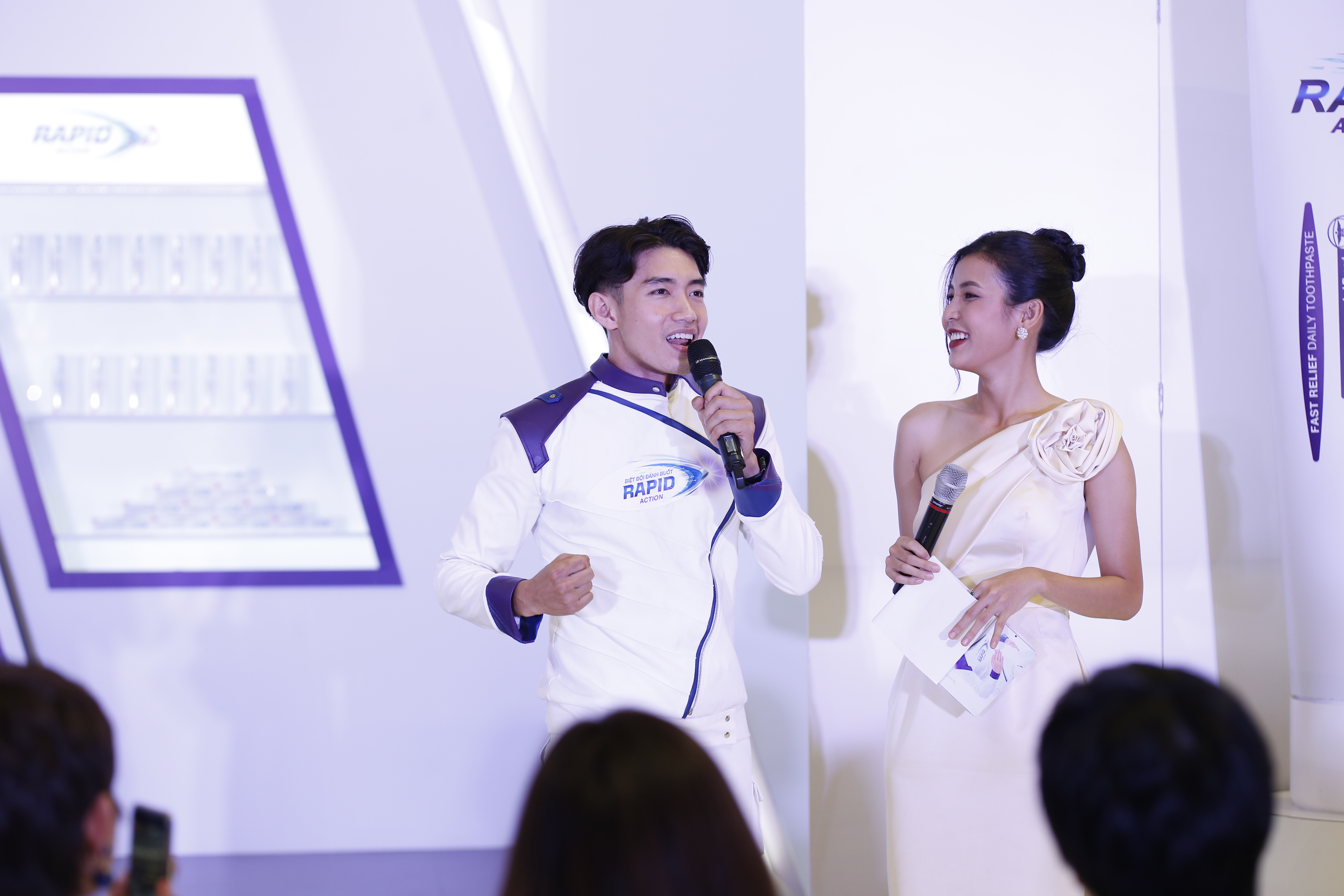 Ngoài hai hot boy, sự kiện ra mắt kem đánh răng Sensodyne Rapid Action còn có sự góp mặt của ca sĩ Tóc Tiên.