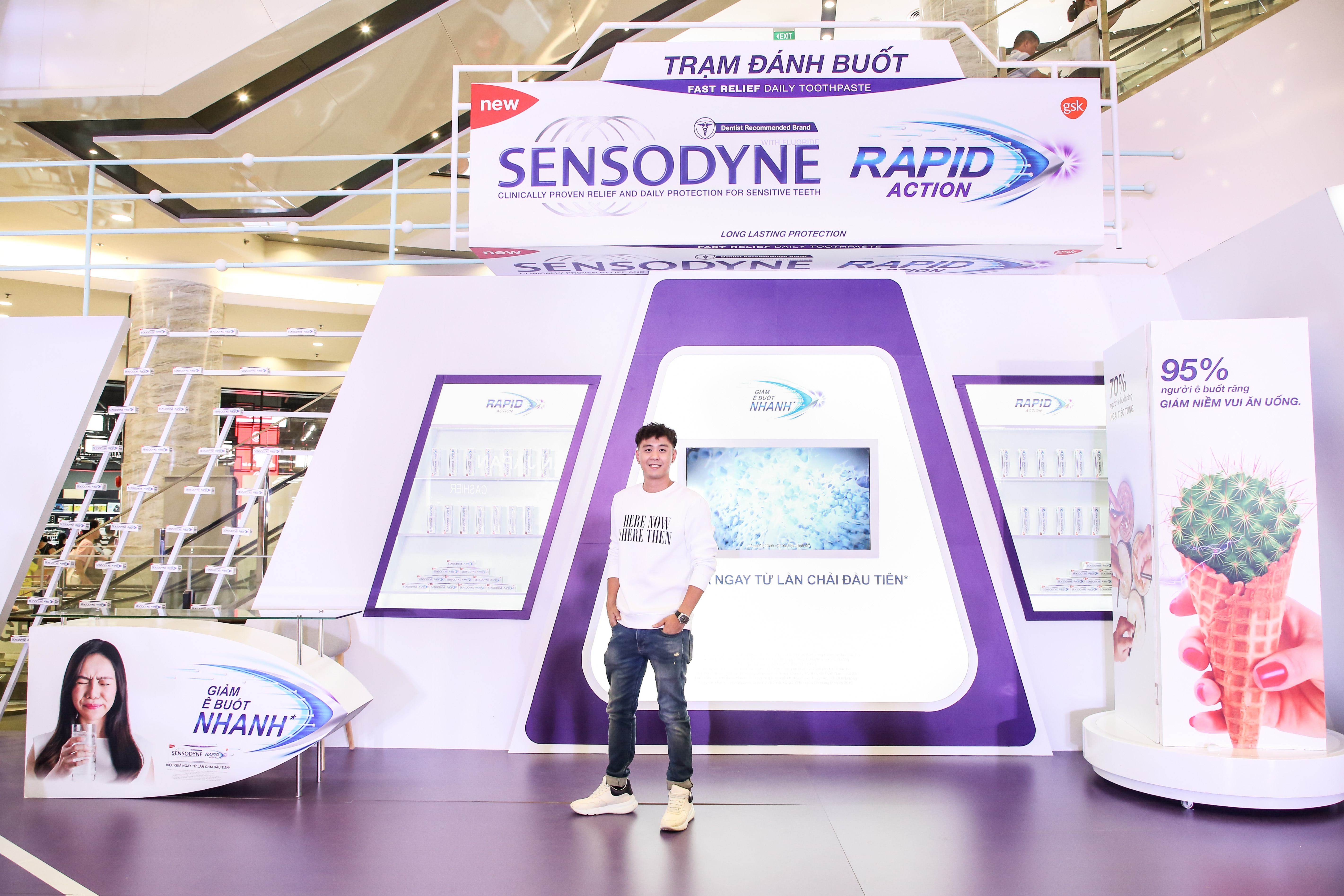 Tại sự kiện, Quang Đăng đã vô cùng thích thú khi được trải nghiệm cảm giác ê buốt và tận mắt nhìn lại hình ảnh “khó đỡ” của mình khi bị buốt đánh ngang răng. Ngoài ra Quang Đăng còn được hướng dẫn và tư vấn về cách giảm nhanh và hiệu quả cho cơn ê buốt răng miệng.