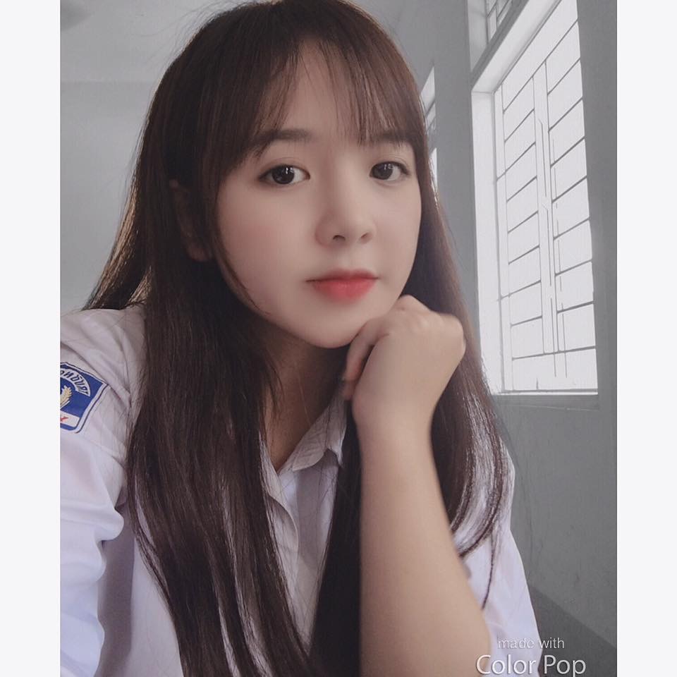 Trong bức ảnh, cô nàng Trần Huyền Châu chỉ mặc bộ đồng phục đơn giản nhưng vẫn dễ thương như búp bê. Khuôn mặt cũng biểu cảm đáng yêu khiến chẳng ai nghĩ cô bạn đã 18 tuổi rồi.