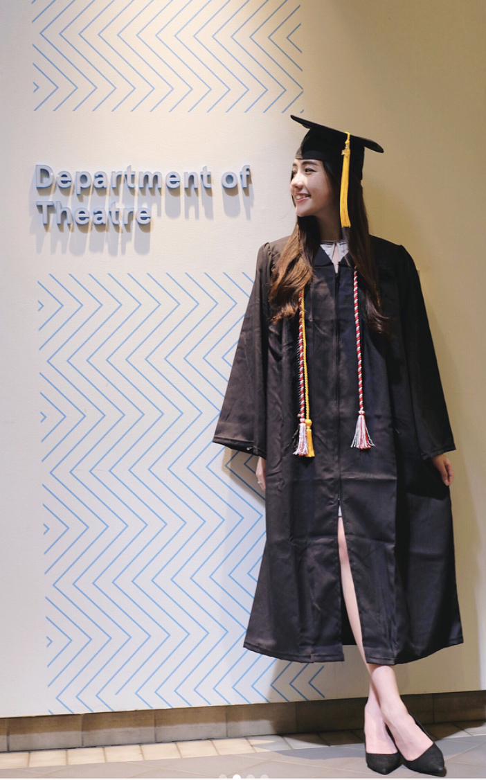 Trong ảnh là một Mie rất xinh đẹp cùng tấm bằng đại học. Cô đã tốt nghiệp ngành kịch nghệ, chuyên ngành diễn xuất. Theo như cô chia sẻ, đáng lẽ năm trước cô đã tốt nghiệp, nhưng cô muốn đi làm một học kỳ rồi học tiếp. Và bây giờ, cô nàng đã chính thức hoàn thành khoá học ĐH của mình.