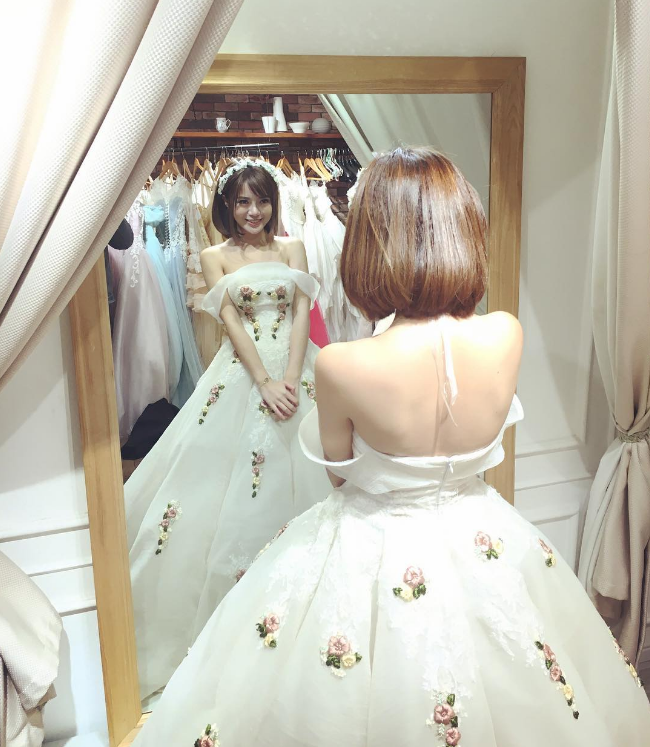 Việc mặc váy cưới chụp ảnh cùng bạn trai đã thêm phần khẳng định thông tin Tú Linh sắp lấy chồng.