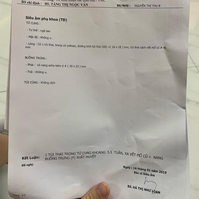 Hot mom 23 tuổi vừa đăng tải hình ảnh giấy khám thai với dòng caption: “Chào đón năm mới với một tin vui mang thai bé thứ 2 trong sự bàng hoàng xen lẫn hồ hởi của hai vợ chồng…”.