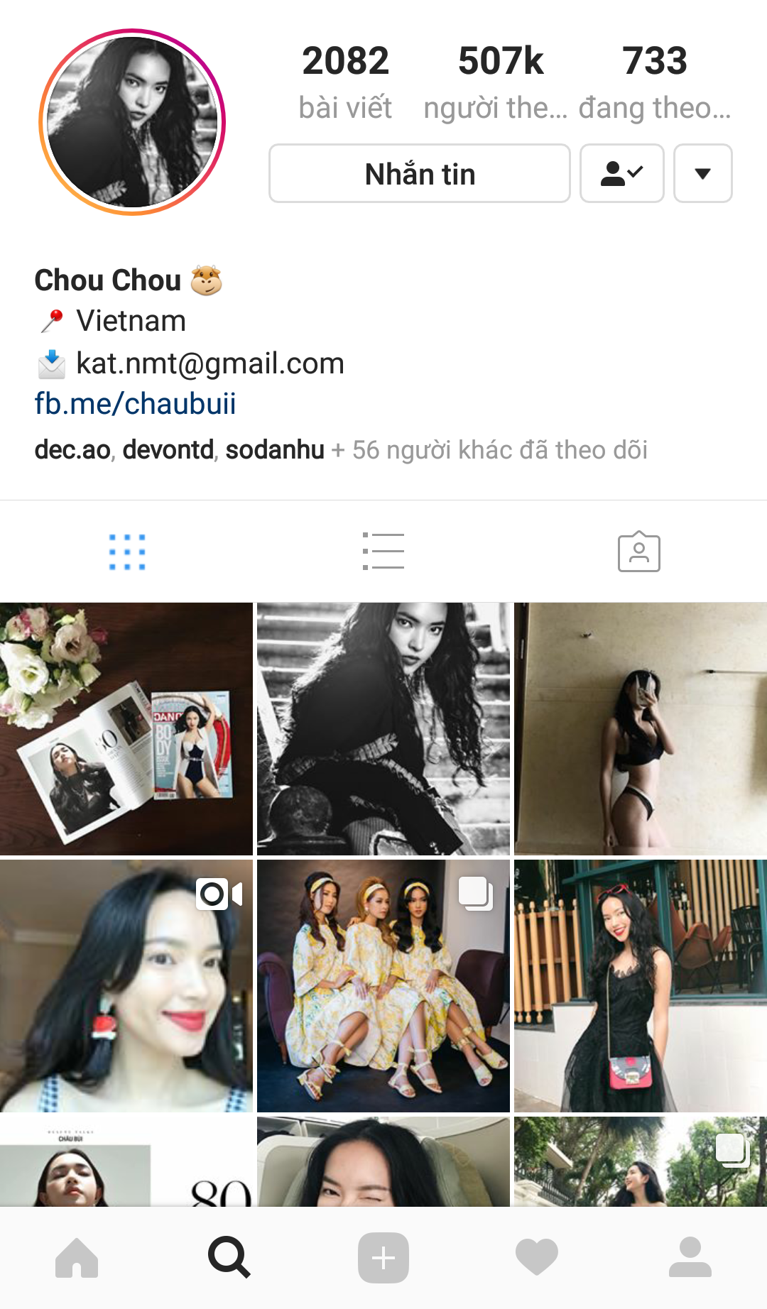 Châu Bùi cập nhật hình ảnh rất thường xuyên nhưng chỉ “lẻ bóng một mình”.