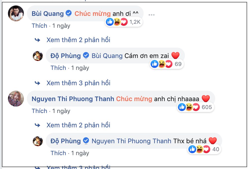 Ngay lập tức, bức ảnh được Độ Mixi đăng tải lên facebook đã thu hút được sự quan tâm rất lớn từ cộng động mạng. Hầu hết đều là những lời chúc mừng từ fan hâm mộ hay các streamer nổi tiếng khác.