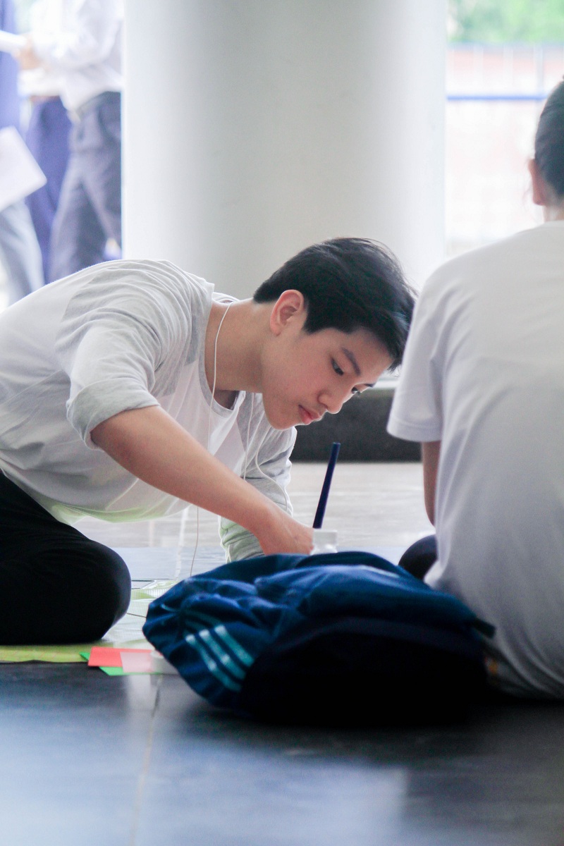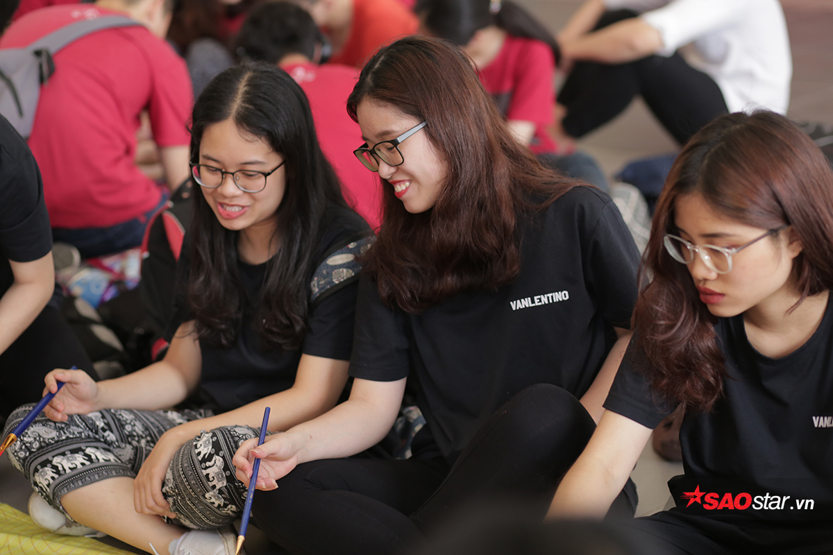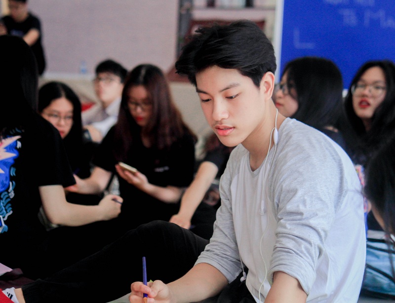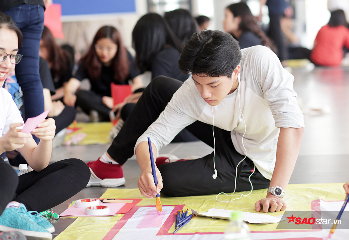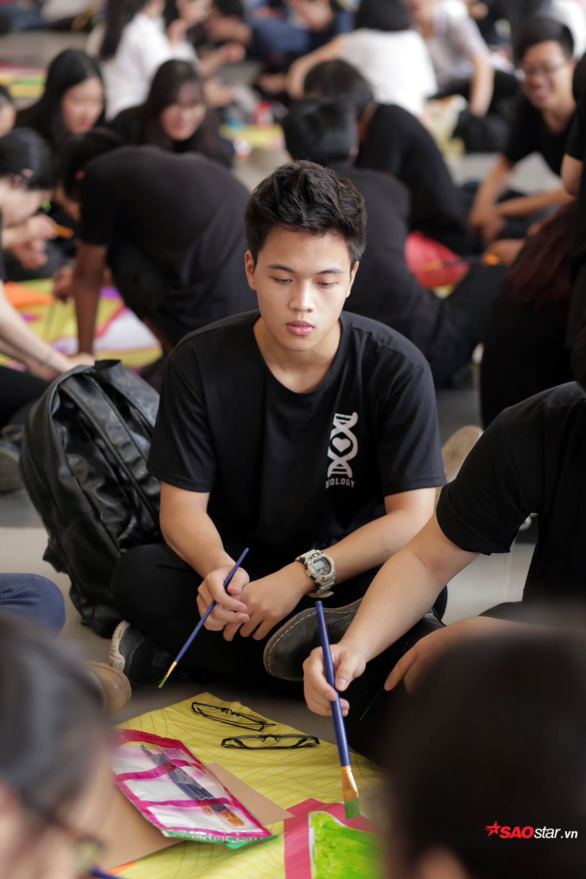 Tại sự kiện, “hot boy cầm bảng” Nguyễn Thượng Minh Hiếu gây được nhiều sự chú ý. Nam sinh lớp chuyên Toán 2 cắm cúi vẽ, tô màu lên tờ tranh được ban tổ chức phát cho mỗi lớp.