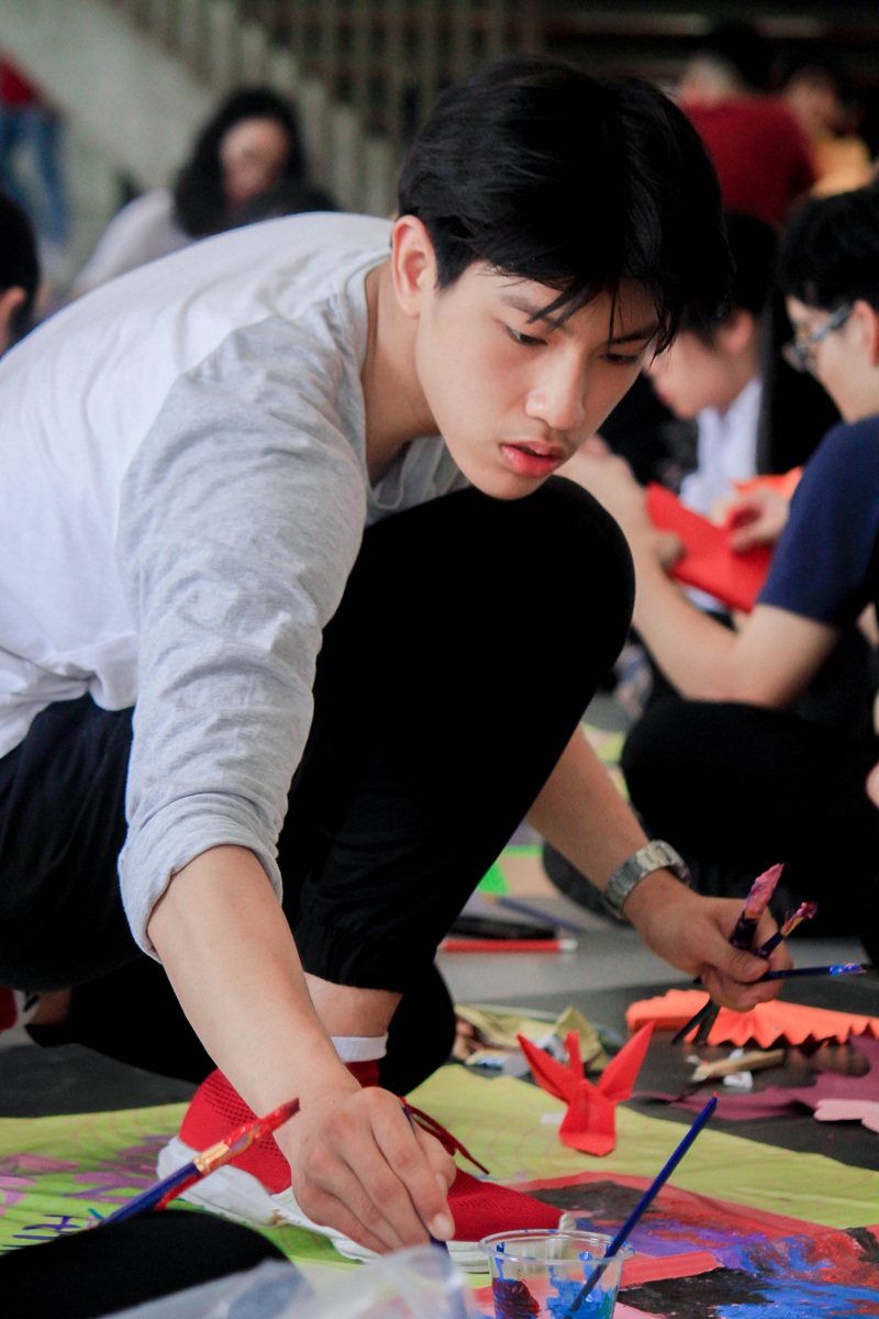 “Hotboy cầm biển” Minh Hiếu chăm chút cho tác phẩm của lớp mình