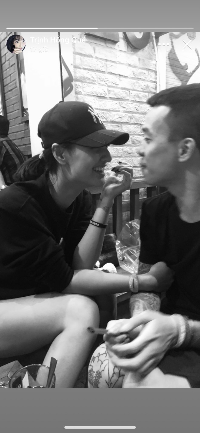 Mới đây, trên trang cá nhân, Hồng Quế đã đăng tải bức ảnh “khóa môi” cùng bạn trai. Giữa không gian quán café, cô và người yêu diện đồ đôi màu đen, không ngần ngại thể hiện tình cảm với nhau bằng nụ hôn ngọt ngào ngay giữa chốn đông người.