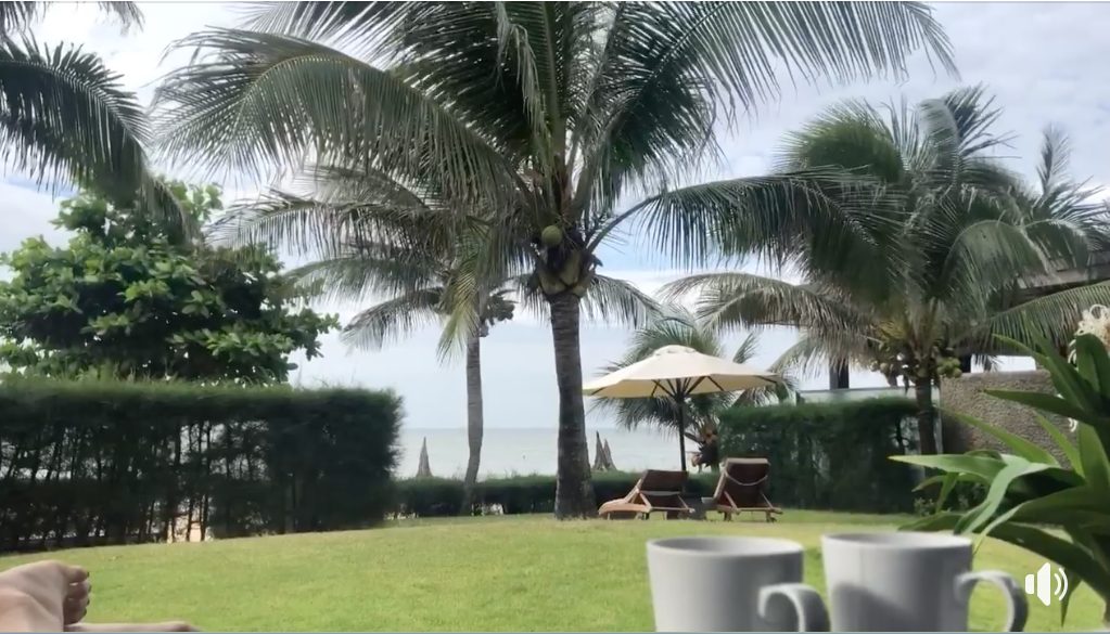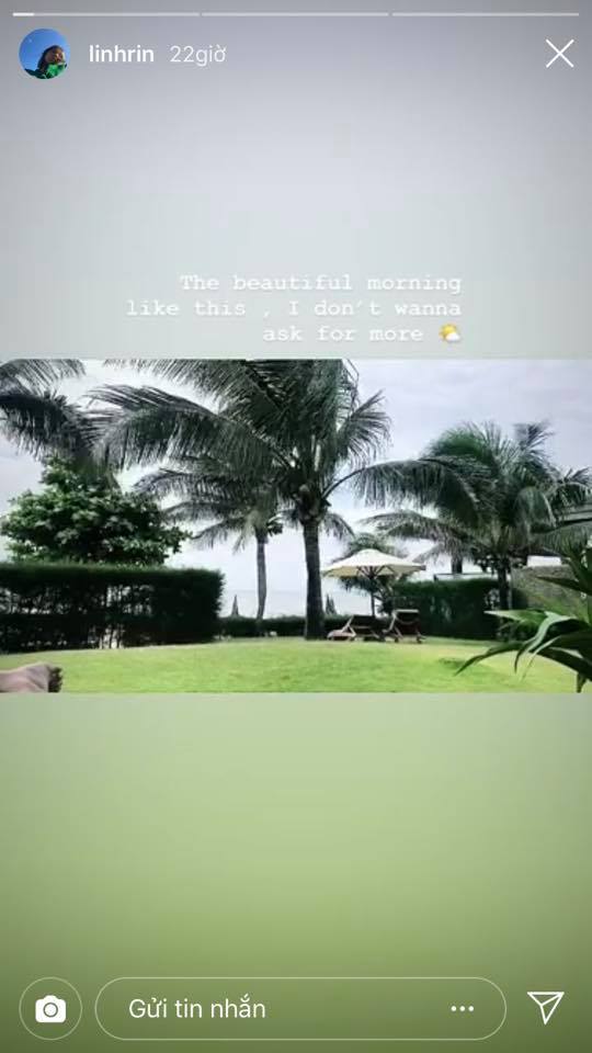 Và Linh Rin cũng thức dậy và tận hưởng một buổi sáng xinh đẹp tại một resort có khung cảnh tương tự.