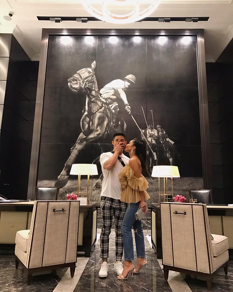 Từ đó đến nay, cô thường xuyên khoe cuộc sống cực kỳ sang chảnh và hạnh phúc của mình cùng chồng mới và con trai. Cặp đôi rất hay đi du lịch cùng nhau, có điểm chung là mê hàng hiệu và thức ăn ngon. Dù vậy, chưa một lần cô cho lộ diện hoàn toàn gương mặt của chàng trai này.