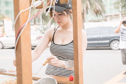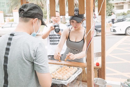 Mỗi hình ảnh cô nàng chia sẻ nhận được hàng chục ngàn lượt yêu thích và chia sẻ. Chính vì thế, không khó để hiểu, chỉ cần Mễ Khả đứng ngoài đừng bán bánh, quầy bánh nướng takoyaki của hot girl gợi cảm luôn tấp nập người mua.