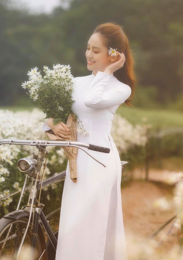 Cụ thể, trên trang cá nhân, Thúy Vi chia sẻ: “Em nằm em nhớ. Một ngày trong veo. Một mùa nghiêng nghiêng. Cánh đồng xa mờ. Cánh cò nghiêng cuối trời. Cất công bay ra tận Hà Nội để chụp cúc họa mi, cũng 4 năm mới mặc lại áo dài trắng, nhớ thời đi học quá”.