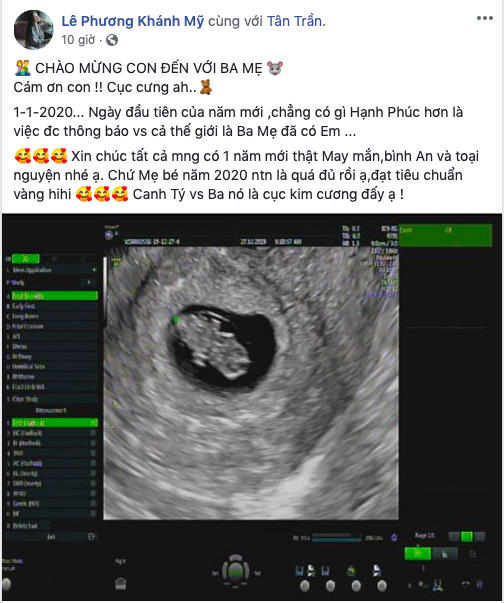 Vân Navy viết: “Chào mừng con đến với ba mẹ! Cám ơn con, Cục cưng à! 1/1/2020… Ngày đầu tiên của năm mới, chẳng có gì hạnh phúc hơn là việc được thông báo với cả thế giới là ba mẹ đã có em… Xin chúc tất cả mọi người có 1 năm mới thật may mắn, bình an và toại nguyện nhé ạ. Chứ mẹ bé năm 2020 như thế này là quá đủ rồi ạ, đạt tiêu chuẩn vàng hihi. Canh Tý với ba nó là cục kim cương đấy ạ!”.