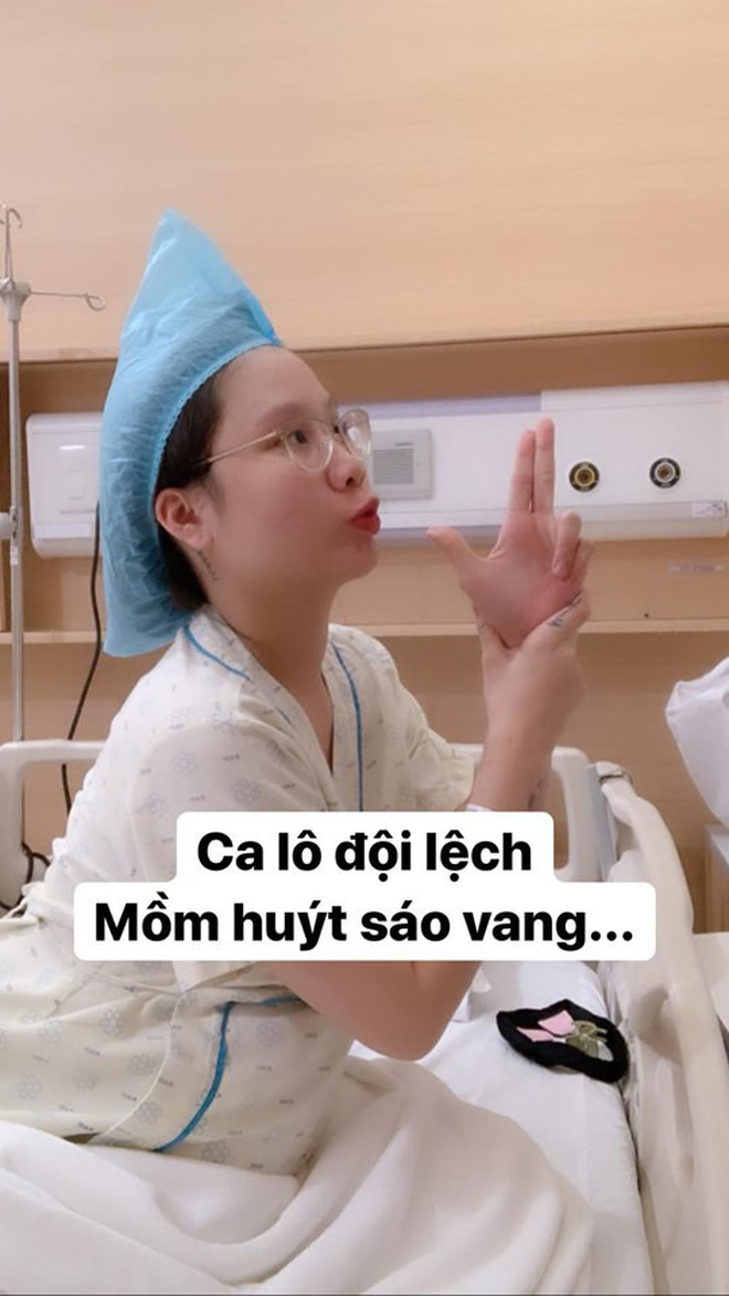 Trên story của mình, Thanh Trần phát hiện thấy một chiếc mũ trông có vẻ khá lạ. Dù đã đi đẻ lần 2 nhưng cô nàng dường như chẳng biết công dụng của chiếc mũ này là gì, nên vội lấy trùm đầu và pose đủ dáng với nào là Ngưu Ma Vương, Shark Tank… Cuối cùng, nhờ cô ý tá nói mà nàng hotmom biết được đây là đồ để… trùm chân.
