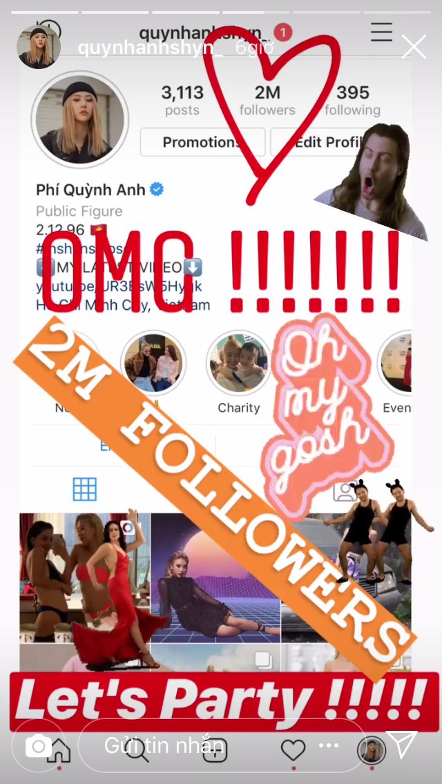 Mới đây, cô nàng đã khoe thành tích khủng khi đạt 2 triệu follower trên Instagram. Với thành tích này, cô nàng đã trở thành gương mặt tiếp theo lọt vào “hội 2 triệu” trên Instagram và chỉ đứng sau người chị Chi Pu (2,7 triệu) và ca sĩ Sơn Tùng M-TP (2,4 triệu) tại Việt Nam.
