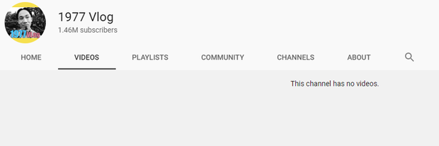 Kênh 1977 Vlog đang là một hiện tượng mới của YouTube tại Việt Nam. Chỉ với với vỏn vẹn 4 clip, nhưng 1977 Vlog đã có hơn nửa triệu lượt đăng ký và gần 14 triệu view. Tuy nhiên, cách đây vài giờ, dân mạng bỗng xôn xao thông tin kênh 1977 vlog bị xóa video khi không còn một video nào.