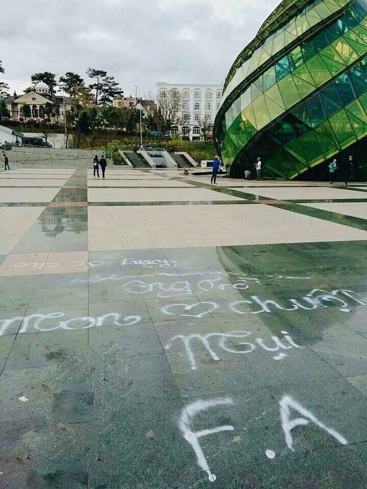 Cặp đôi phun sơn lên Quảng trường Lâm Viên để thể hiện tình yêu