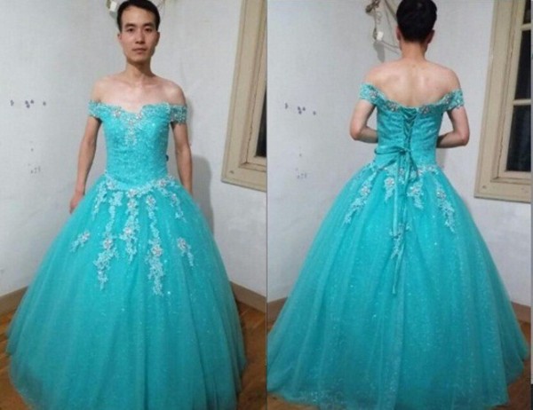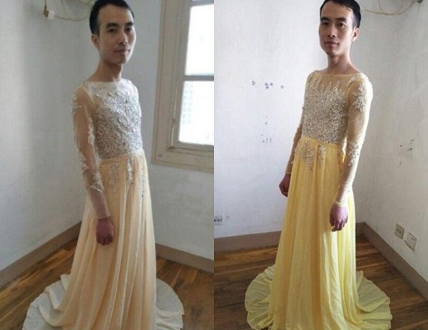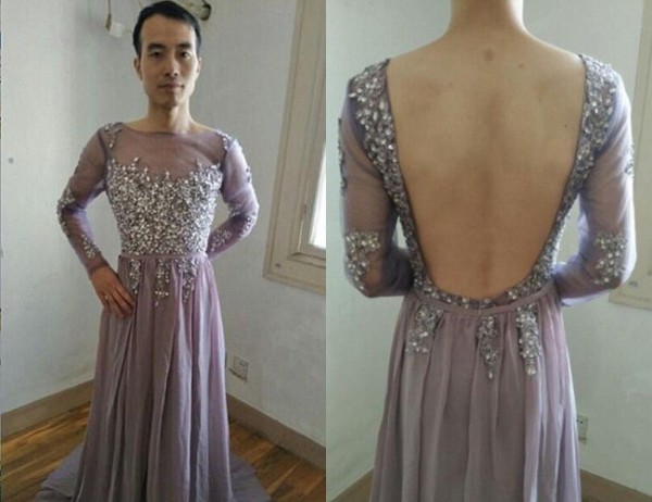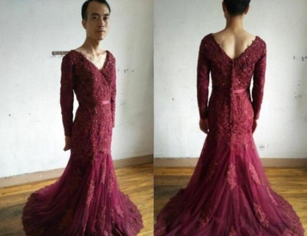 Và một cô gái mua váy dạ hội trên trang bán hàng online nổi tiếng AliExpress dưới dây đã được đáp ứng một cách không thể nào thịnh tình hơn. Cụ thể, để chứng minh sản phẩm của mình sẽ giúp “người đẹp vì lụa”, chủ shop đã không thèm cho mẫu nữ mặc mà sáng tạo đến mức tự khoác chiếc đầm cánh cụp cánh xòe lên cơ thế khẳng khiu của mình. Và hiệu ứng thu về được cũng khá bất ngờ đó.