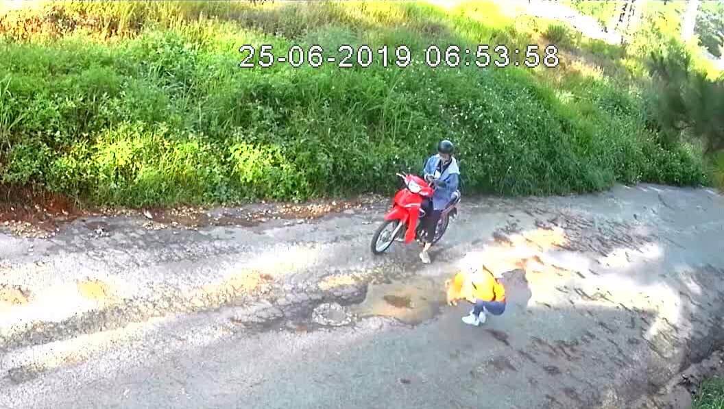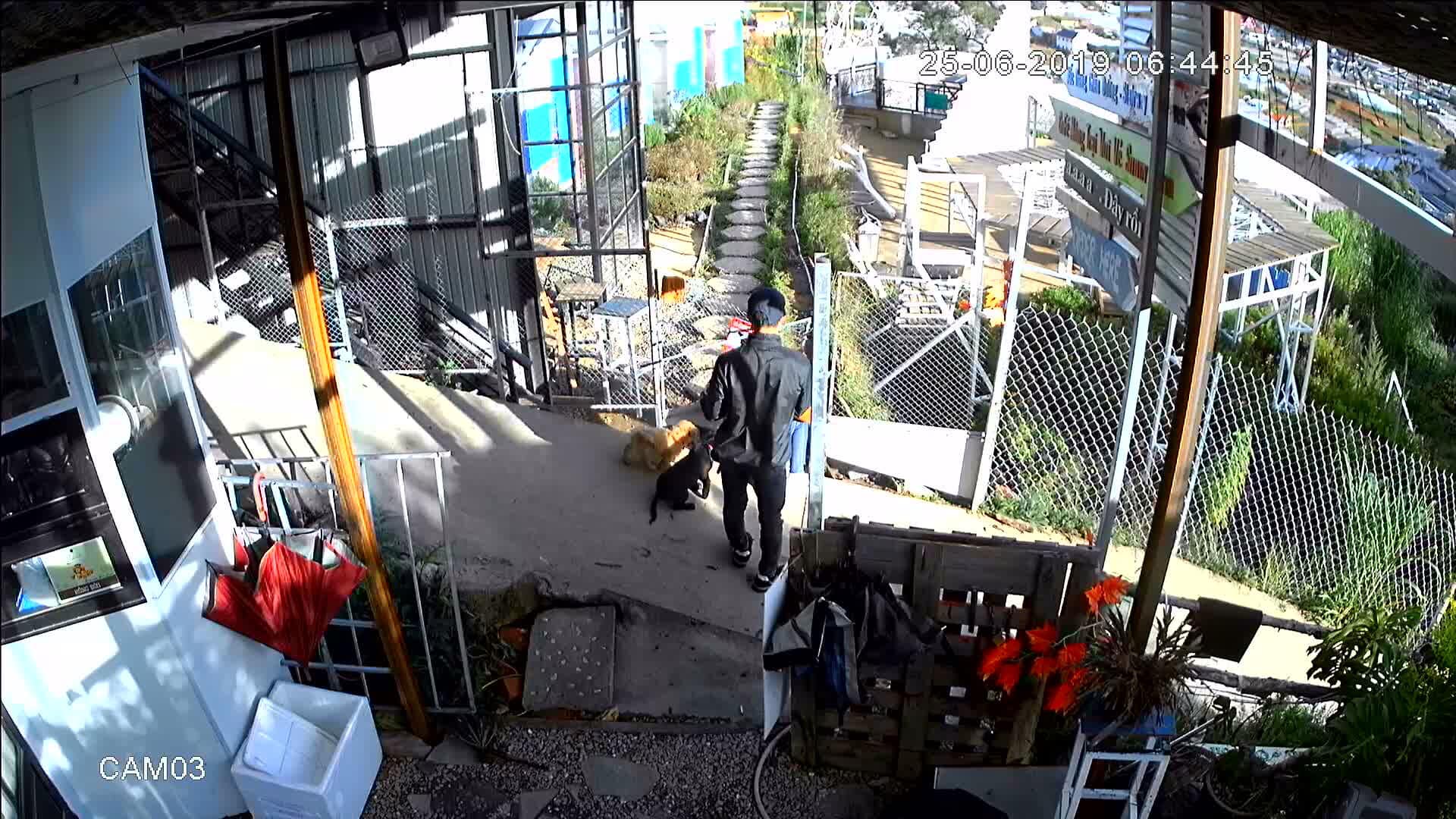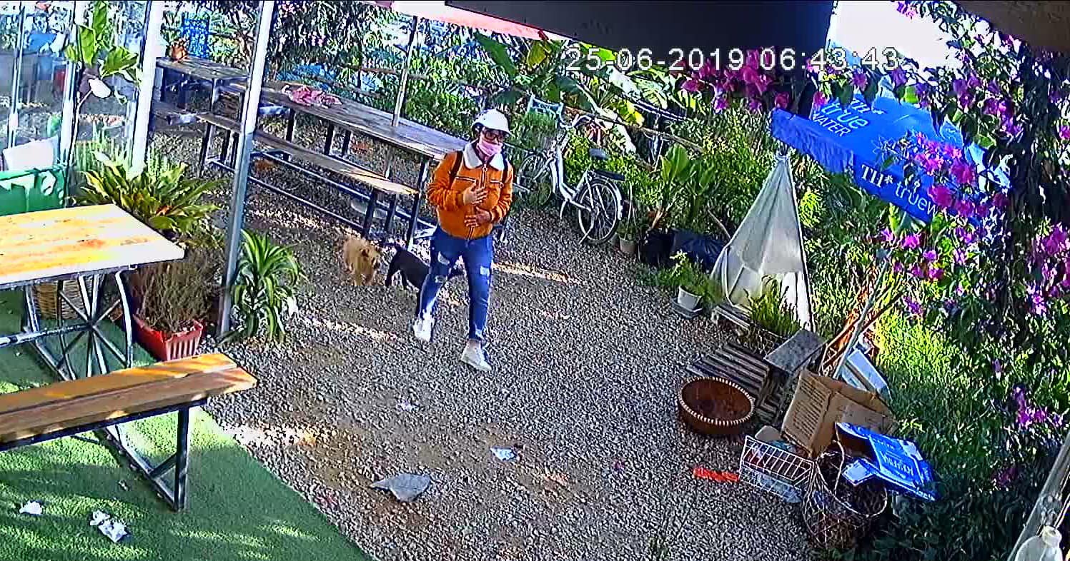 Theo như những hình ảnh được cắt từ camera mà quán ghi lại, có thể thấy, cặp đôi đã đi qua hàng rào chưa được phép lúc quán chưa mở cửa để chụp hình. Sau đó, trên đường ra xe, đã bế chú chó màu vàng (trong số 2 chú chó xuất hiện lúc đó) lên xe và đi mất.