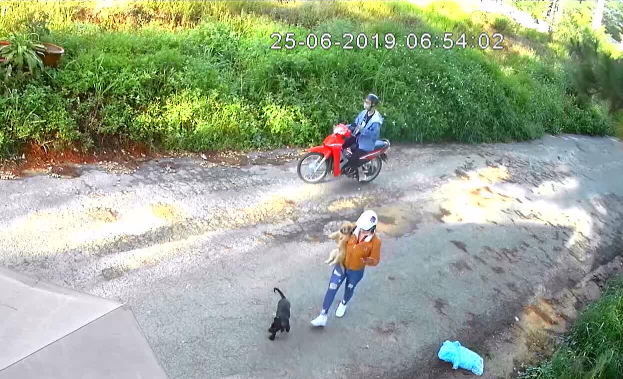 Trên đường ra về lấy xe, các bạn (cụ thể là bạn nữ như trong camera quay lại được) đã tiện tay cầm luôn chó con của quán mang theo.