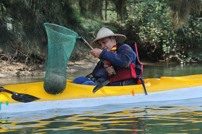 Hiện anh đã đầu tư hơn 40 thuyền kayak để phục vụ khách và thuê 3 nhân viên làm nhiệm vụ vận chuyển rác nhặt được trên sông đến nơi tiêu hủy.