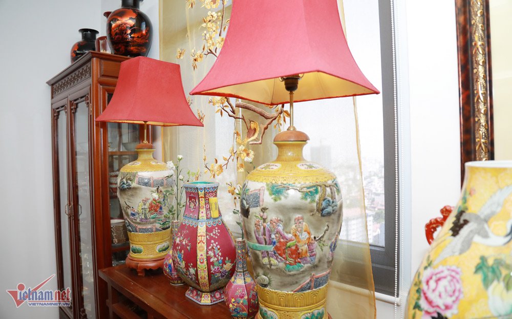 Những chiếc đèn giả cổ được bầy một góc phòng khách.