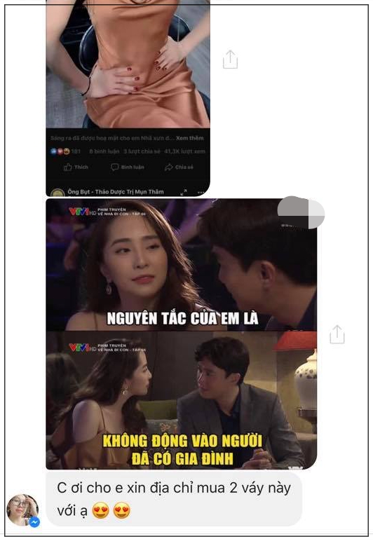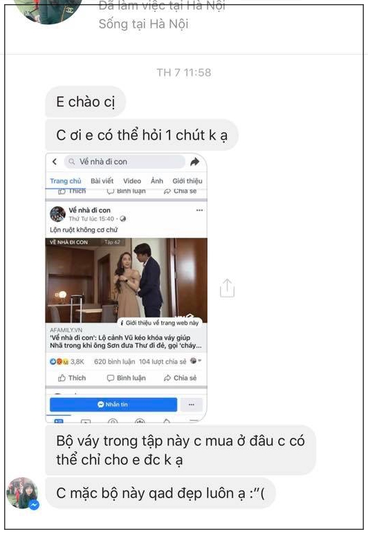 Loạt inbox của khán giả hỏi mua váy mà Quỳnh Nga diện trong Về Nhà Đi Con.